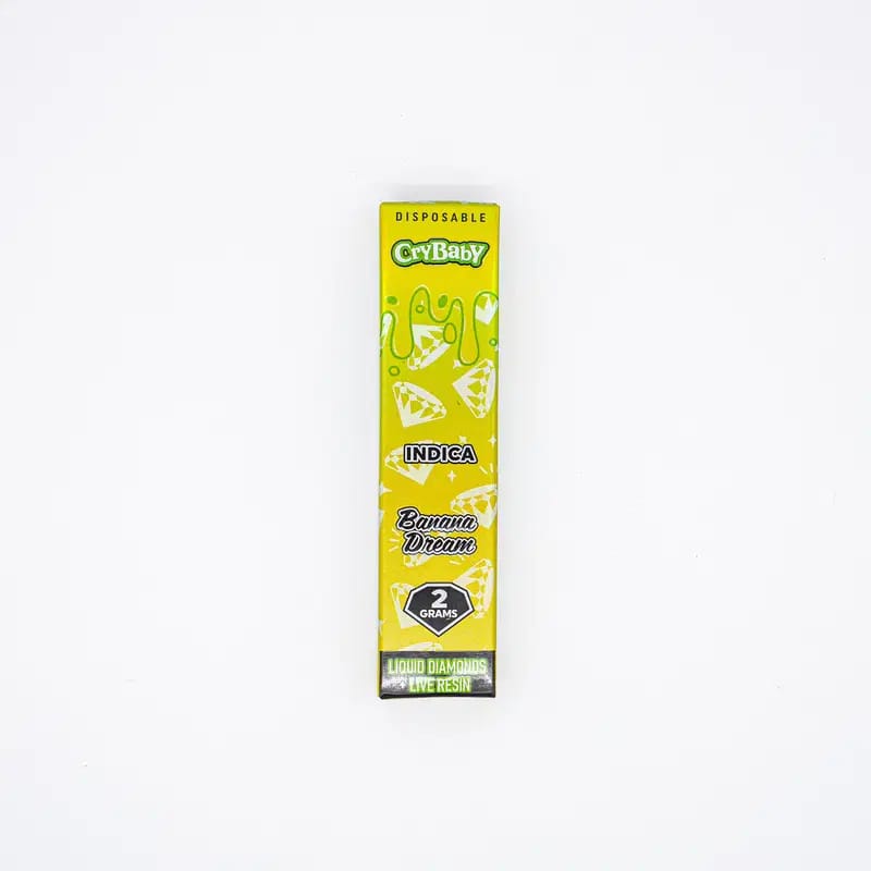 Crybaby Banana Dream 2G Disposable devices are high-potency THC vape pens that come with 2 grams of cannabis extract already in them. This is usually a mix of live resin and liquid diamonds for the best flavor and potency. You don’t have to push any buttons or charge them; just inhale and they will work with a built-in battery.